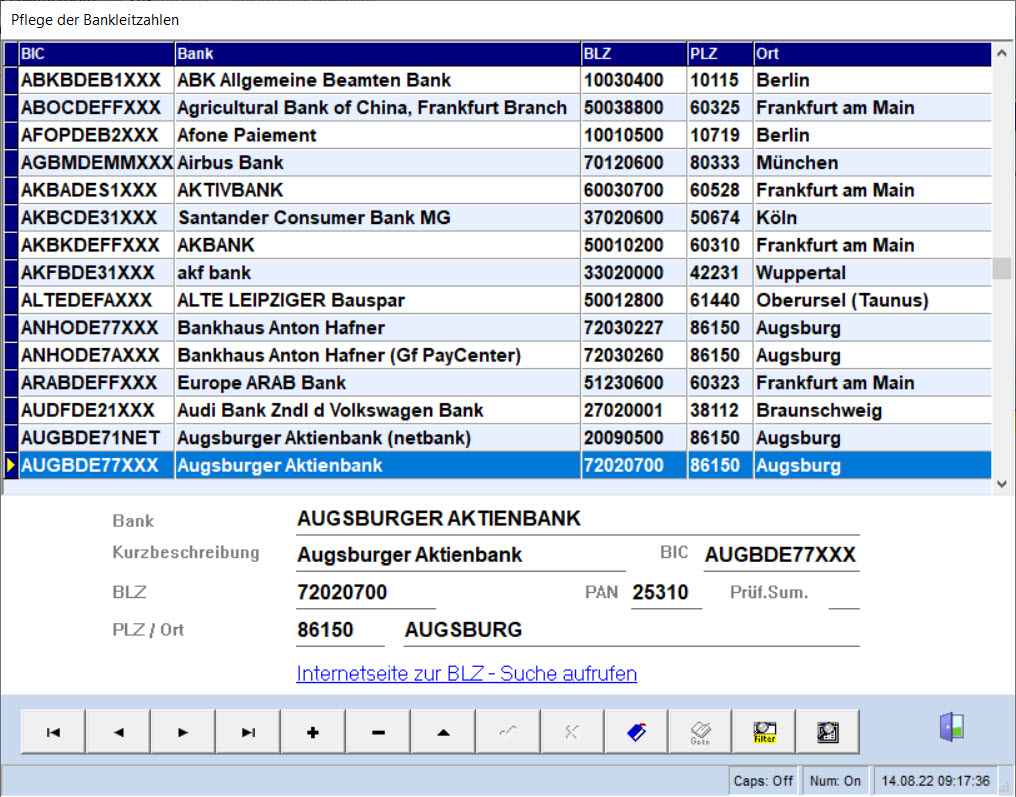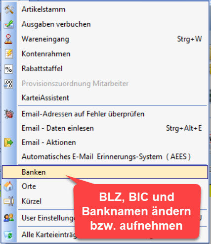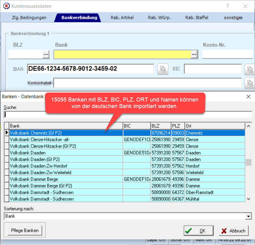 Banken von BLZ - Tabelle in den Kundenzusatzdaten übernehmen.