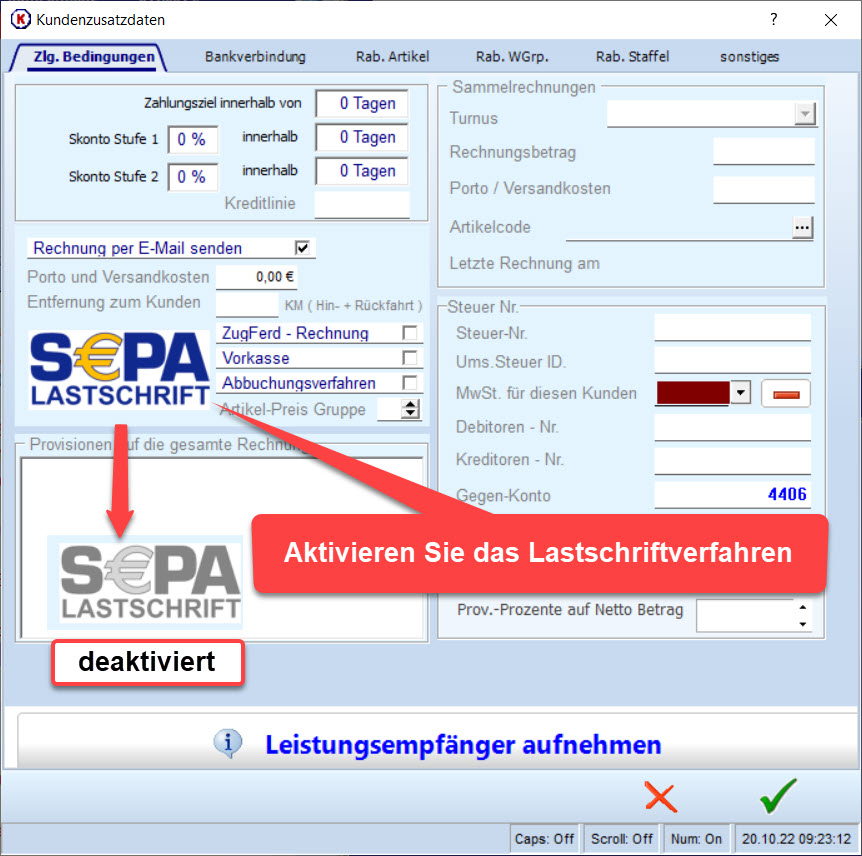 können Sie in den Kundenzusatzdaten einen Leistungsempfänger