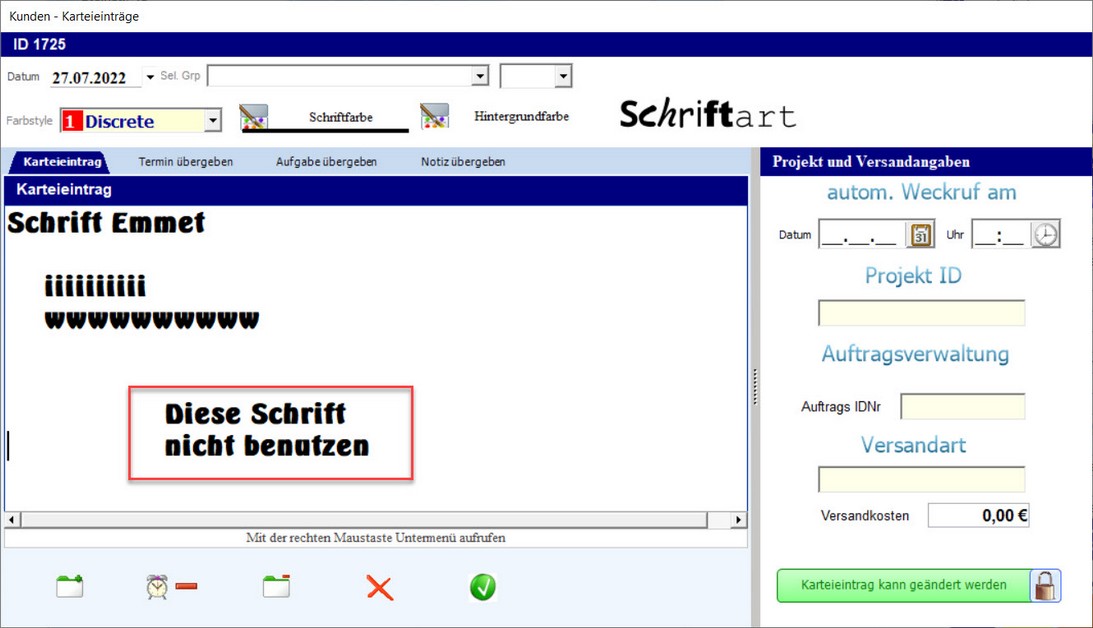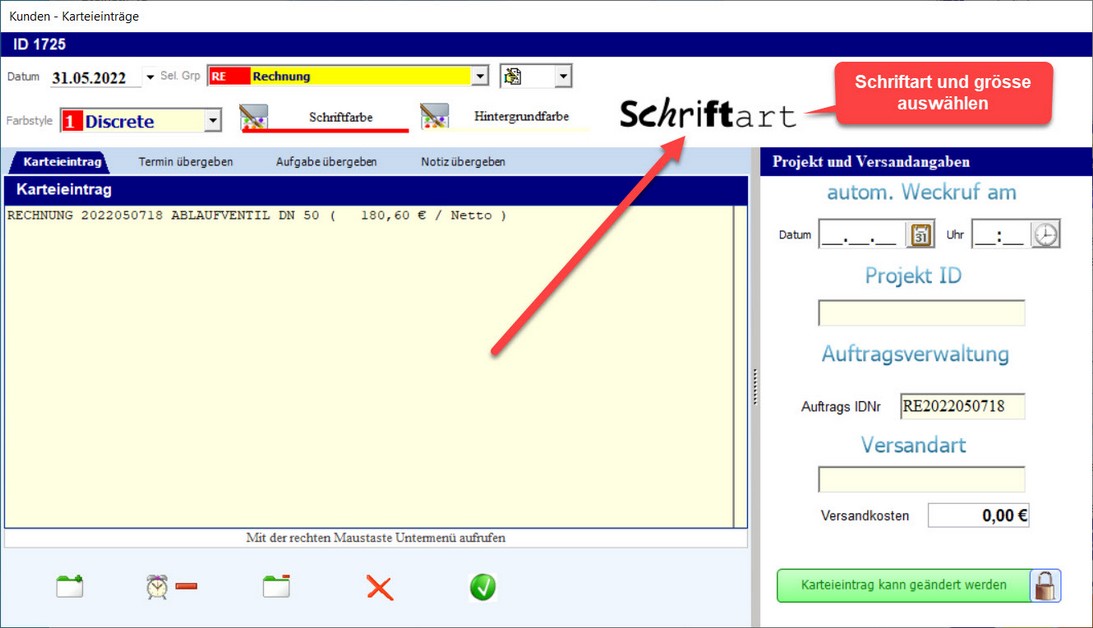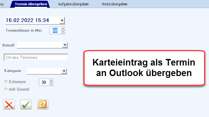 - Bestimmen Sie das Datum für den Karteieintrag. ( Wenn leer dann wird das aktuelle Datum eingetragen )