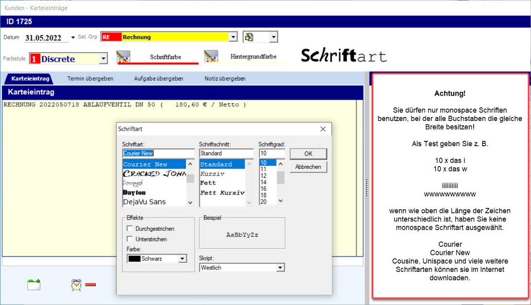 Einige User mit Sehschwäche benötigen eine grössere Schrift für die Karteieinträge. Aus diesem Grunde können sie jetzt die Schriftart, -grösse und - Style auswählen.