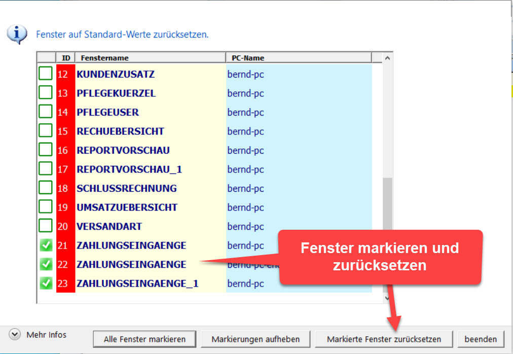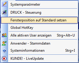 Über das Menü - System - Fensterpositionen auf Standard setzen können Sie ein oder ALLE Fenster die nicht mehr erreichbar sind oder nicht korrekt angezeigt werden auf die Standardpositionen zurücksetzen.
