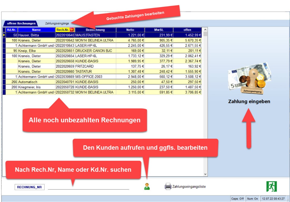 Wenn Sie z.B. monatlich ca. 350 Rechnungen schreiben, dann sind das im Jahr schon 4.200 Rechnungen und in 4 Jahren 16.800 Rechnungen bzw. Zahlungen die geladen werden müssen. Die dann selbst für KUNDE!-iNet Anwender noch immer schnell aufgerufen werden können.