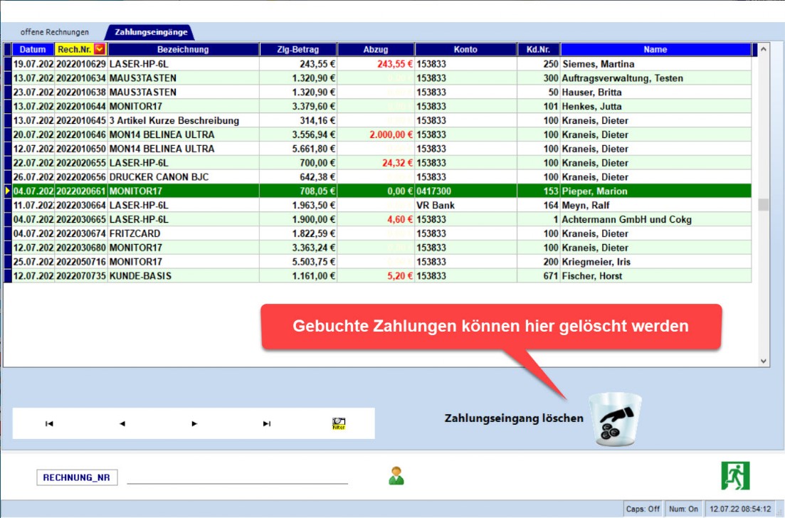Rechnungn mit Lastschriftverfahren werden hellgrün hinterlegt!