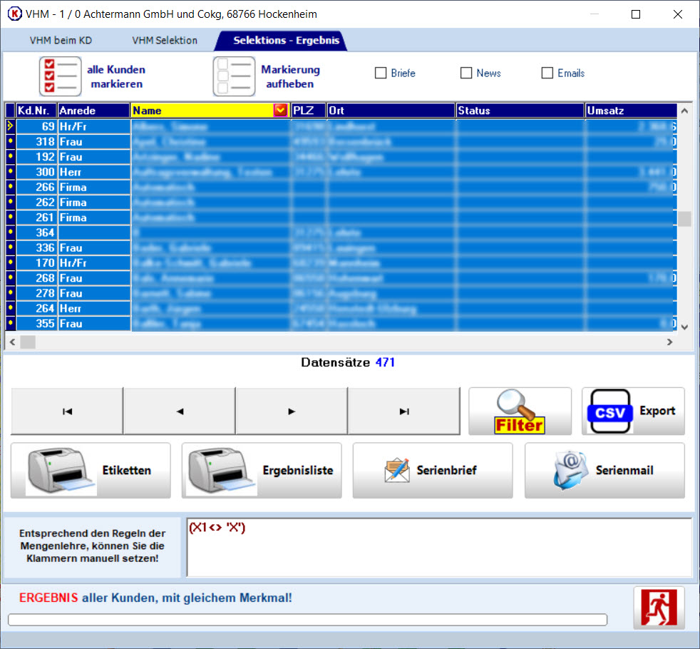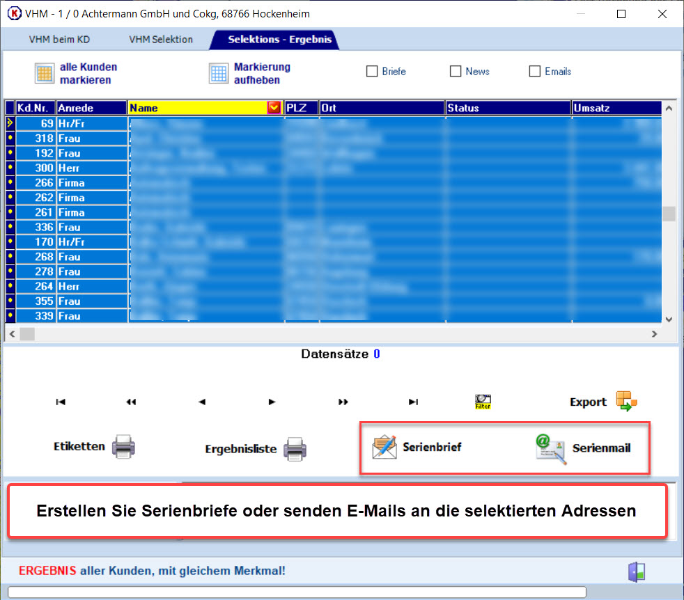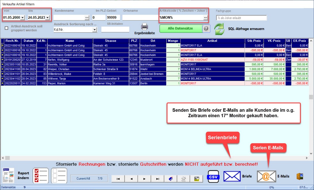 Selektieren Sie ihre Kundenauswahl über die Artikelverkaufsliste und erzeugen Sie aus dem Ergebnis Serienbriefe oder Serien E-Mails