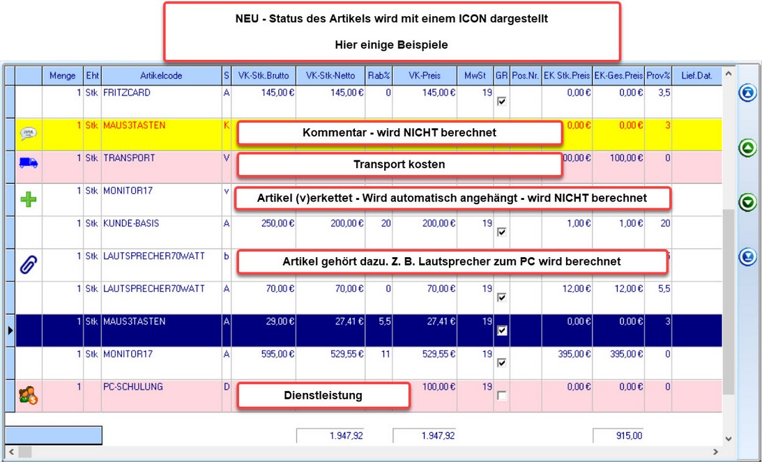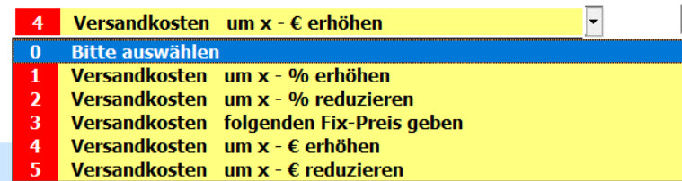 Sö können sie Artikel z.B. mit dem Status "Versandkosten" um x % erhöhen oder reduzieren. Einen FIX - Preis festlegen. Oder um x € erhöhen bzw. reduzieren.