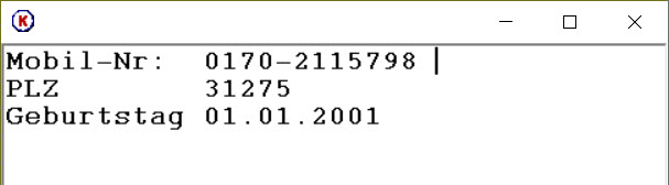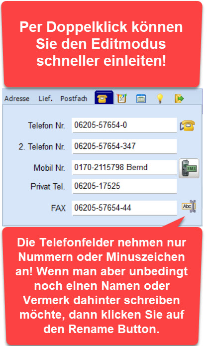 Wenn Sie mit dem KUNDE! - PHONER arbeiten schreiben sie KEINE Buchstaben in die Felder.