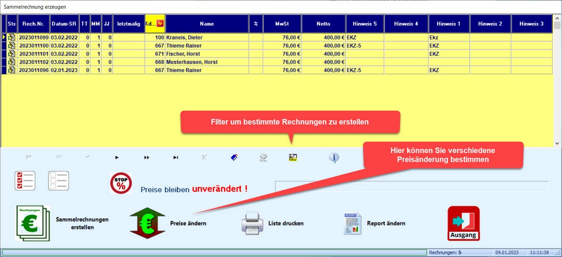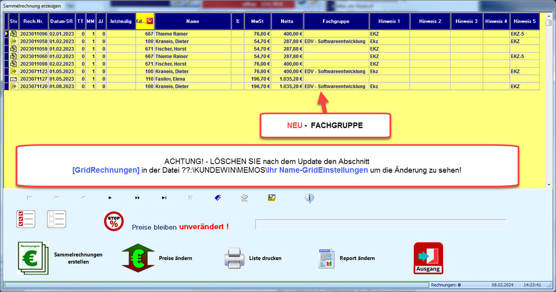 KUNDE! - Anwender die viele Kunden haben die monatliche Sammelrechnungen erhalten können jetzt Preisänderung ganz einfach durchführen.