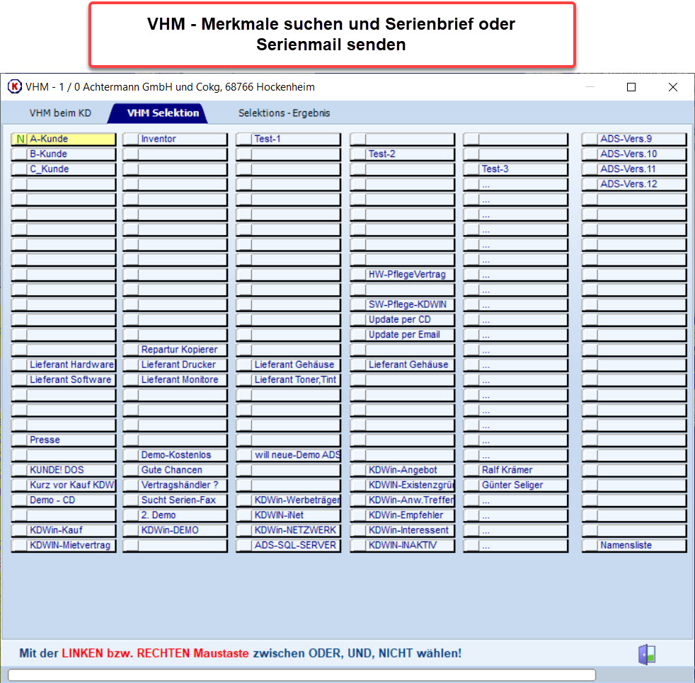 - Aus dem VHM ( Verhaltensmerkmalen der Kunden )